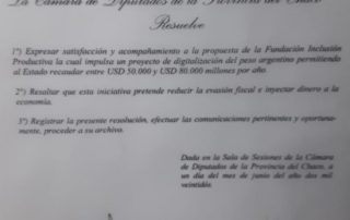 En sesión del 1-6-2022 la Cámara de Diputados del Chaco, con el voto unánime, resolvió expresar satisfacción y acompañamiento a la propuesta del PAD.